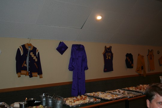Camel Memorabilia hanging on the wall. There were great memories on the table too! Someone really "dug" to find Warrior Power buttons, the Sound of Music play book and Marty Maher in a pair of classic striped polyester pants in elelmentary school!!!